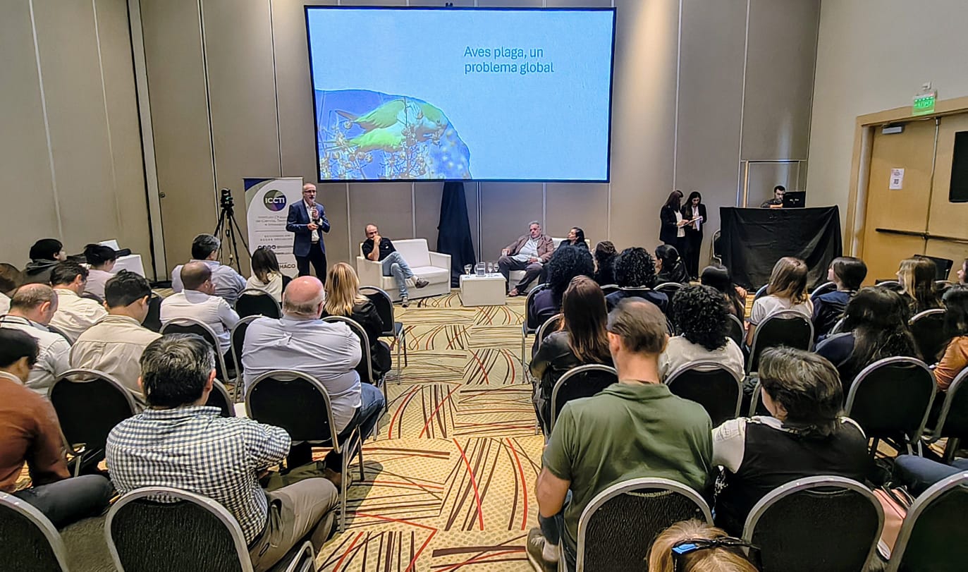 El director del CCT CONICET Nordeste e investigador del CONICET en el Centro de Ecología Aplicada del Litoral (CECOAL, CONICET - UNNE), Adrián Di Giacomo, disertó en el bloque de agroindustria, donde presentó la conferencia "Drones biomiméticos para el control inteligente de aves en cultivos".